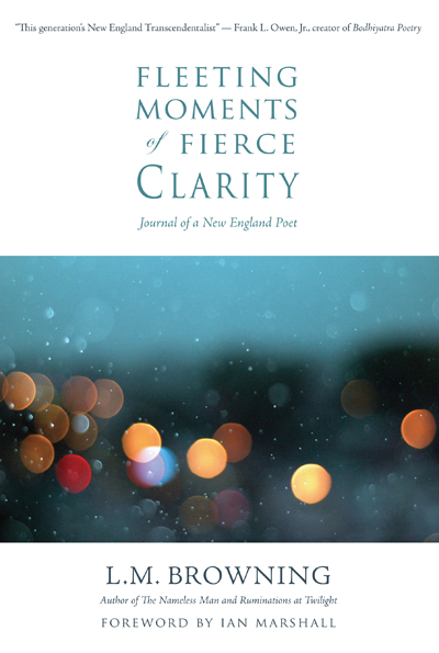"L.M.Browning’s rich little book invites the reader to face our common “fear [of] the silence” and take a courageous breath. Her Fleeting Moments may not always bring a contented clarity, yet presents an open journal of a journey within, to fiercely face that silence, and dare to walk beyond it into deeper woods where we can embrace some kind of natural sacredness. This is a celebration through suffering, a seeking beyond the search, and a pathway into a welcome unknown. At times the prose itself becomes poetry, and there are delightful glimmers of the New England life many of us only dream of. One imagines Emerson and Fuller including gifts from this book in The Dial."